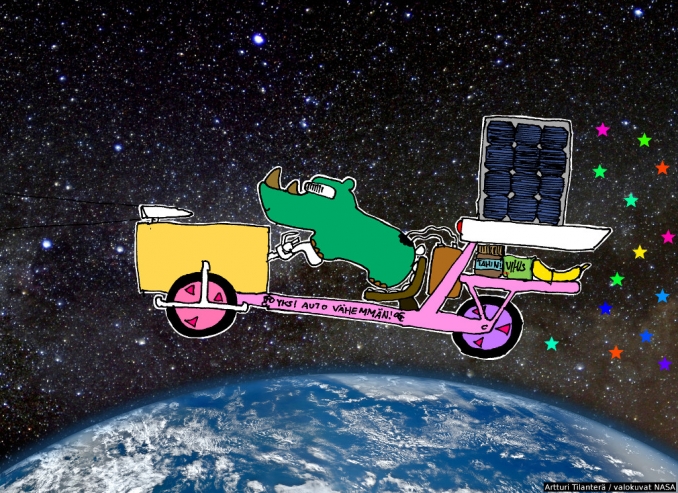 Photosynthetic rhinoceros Sakke and their photovoltaic-assisted space cycle call all friends of the Earth to a pre-Christmas / winter party! Totally nonformal, hot nonalcoholic drinks and wintery & Christmassy Vegan delicacies.