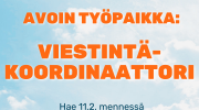 Etsimme tiimiimme näkemyksellistä viestintäkoordinaattoria, joka on innostunut rohkeasta viestinnästä, vieistinnän suunnittelusta ja vapaaehtoisten koordinoinnista.